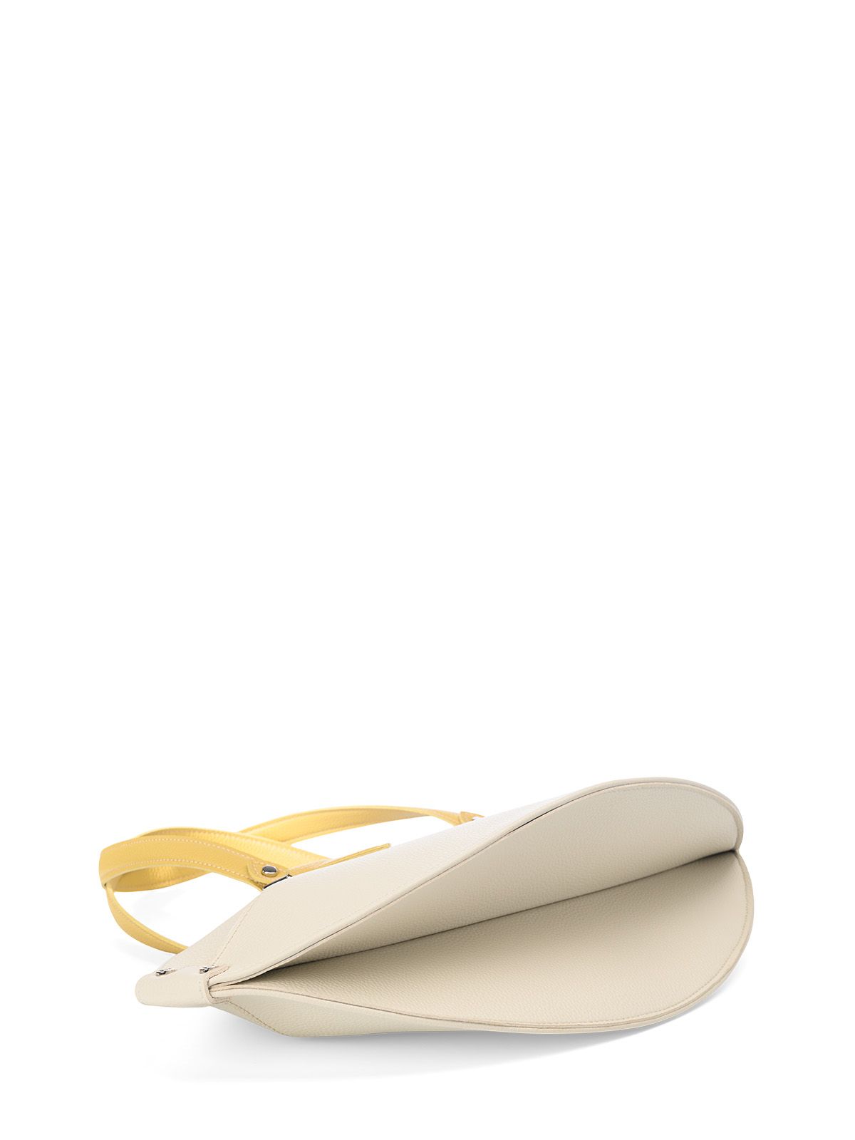 Сумка уплощённой формы среднего размера (М). Вход в сумку закрывается на молнию. На передней и задней стенках настрачные ручки плоской формы. Дно сумки складывается и тем самым предаёт сумке плоскую форму. Внутри 2 кармана: накладной на резинке и карман на молнии.