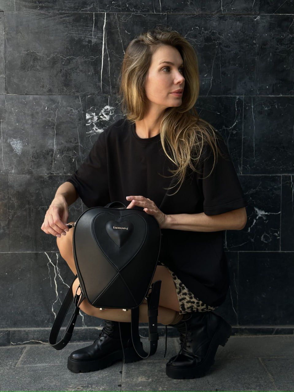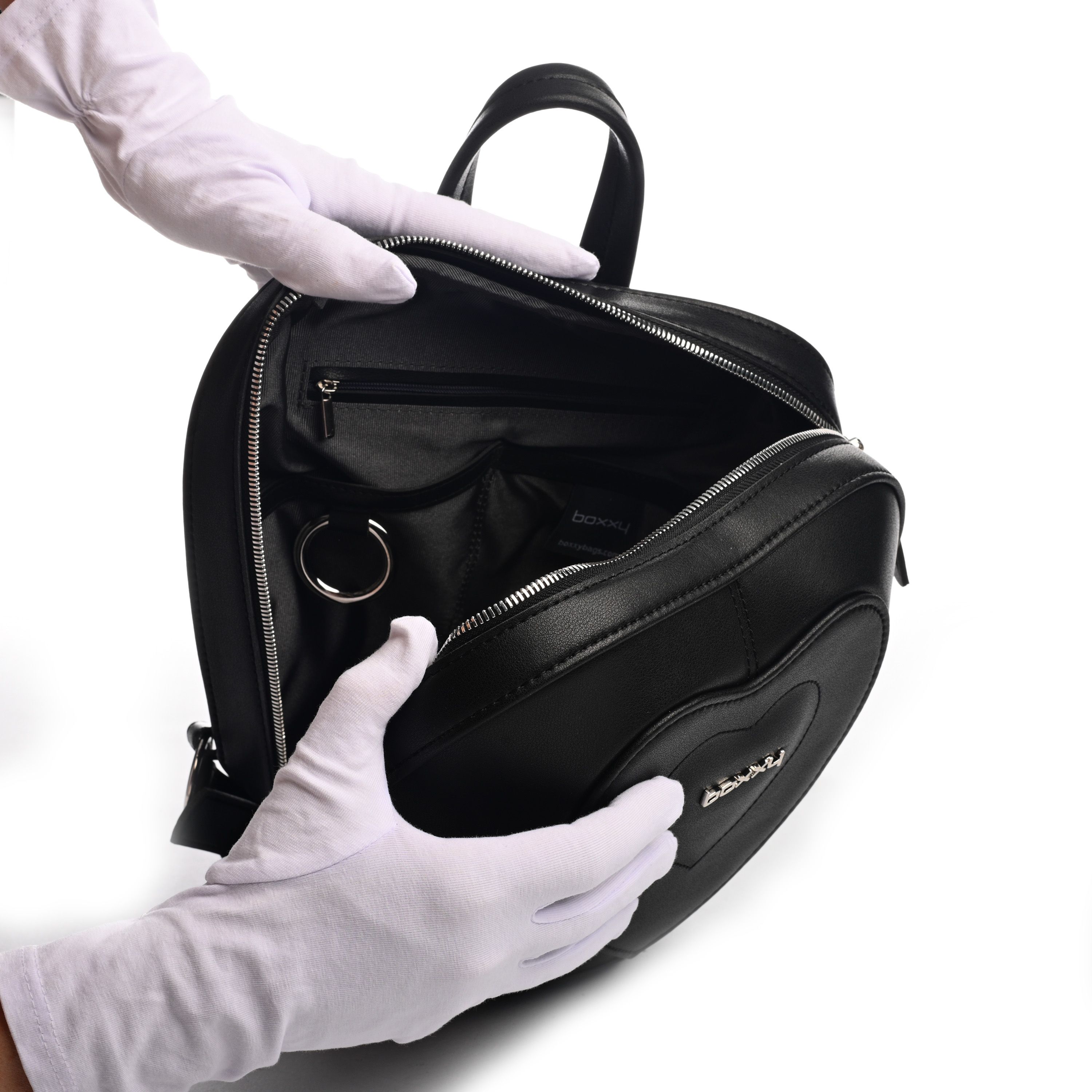 Рюкзак в форме сердца APPLE 3013 большого размера (L). Закрывается на замок молнию. Передняя стенка имеет выпуклую форму с декоративными элементами. На задней стенке регулируемые до 75 см ремни-лямки и короткая ручка. На дне установлены ножки (пукли). Внутри одно отделение. На стенках подклада: карман накладной закрывающиеся на магнит, карман на молнии.