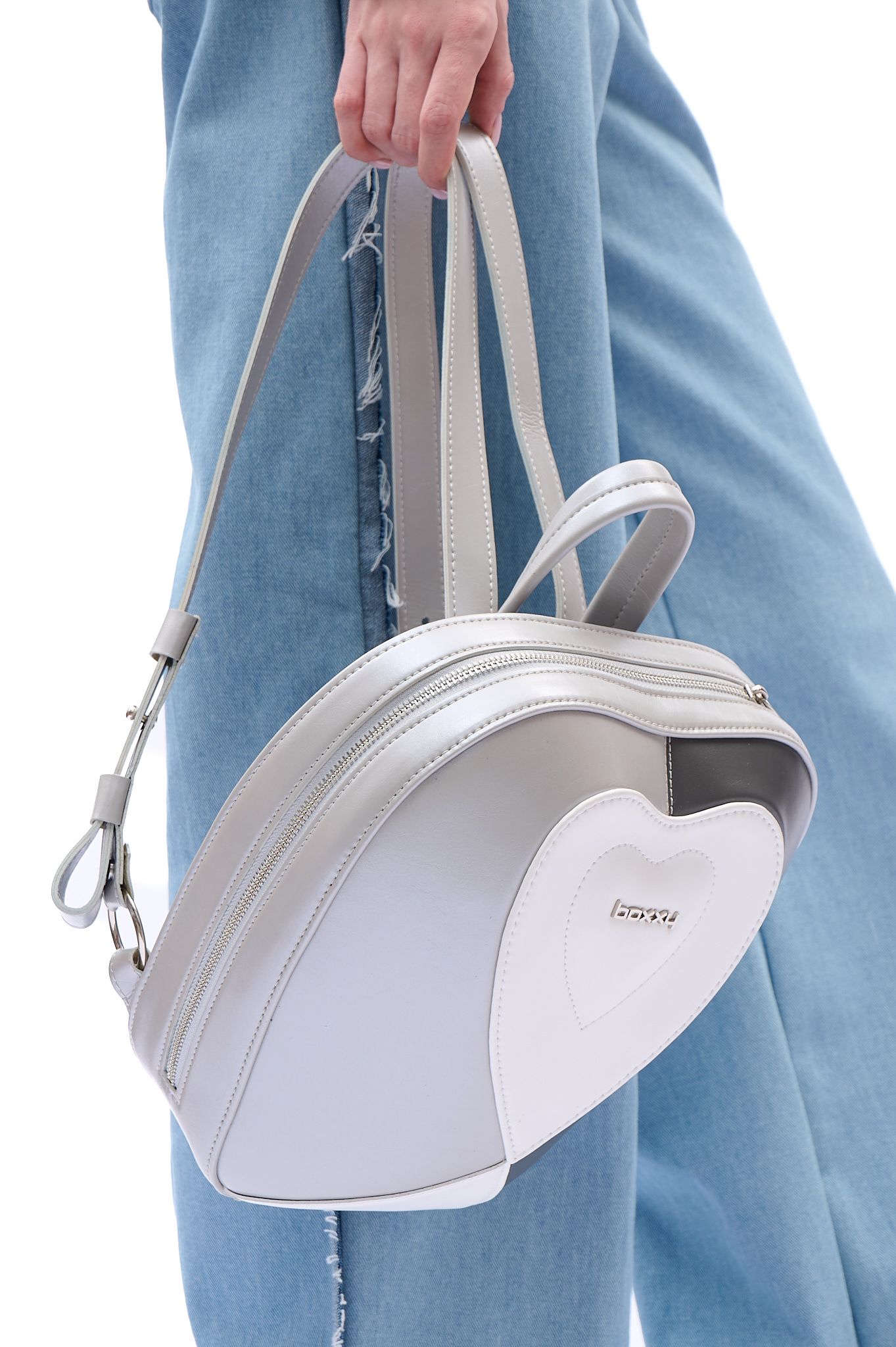 Рюкзак в форме сердца APPLE 3013 большого размера (L). Закрывается на замок молнию. Передняя стенка имеет выпуклую форму с декоративными элементами. На задней стенке регулируемые до 75 см ремни-лямки и короткая ручка. На дне установлены ножки (пукли). Внутри одно отделение. На стенках подклада: карман накладной закрывающиеся на магнит, карман на молнии.