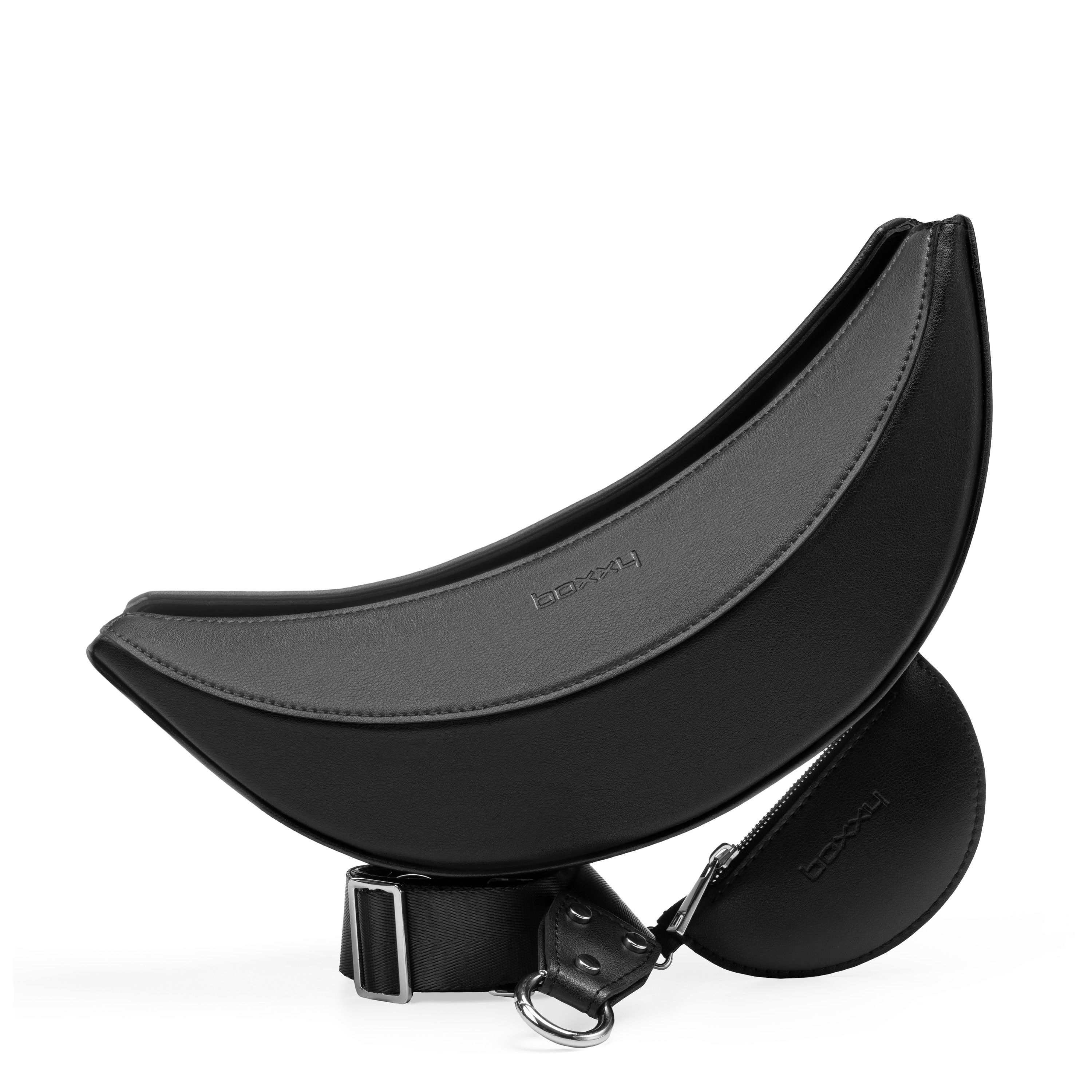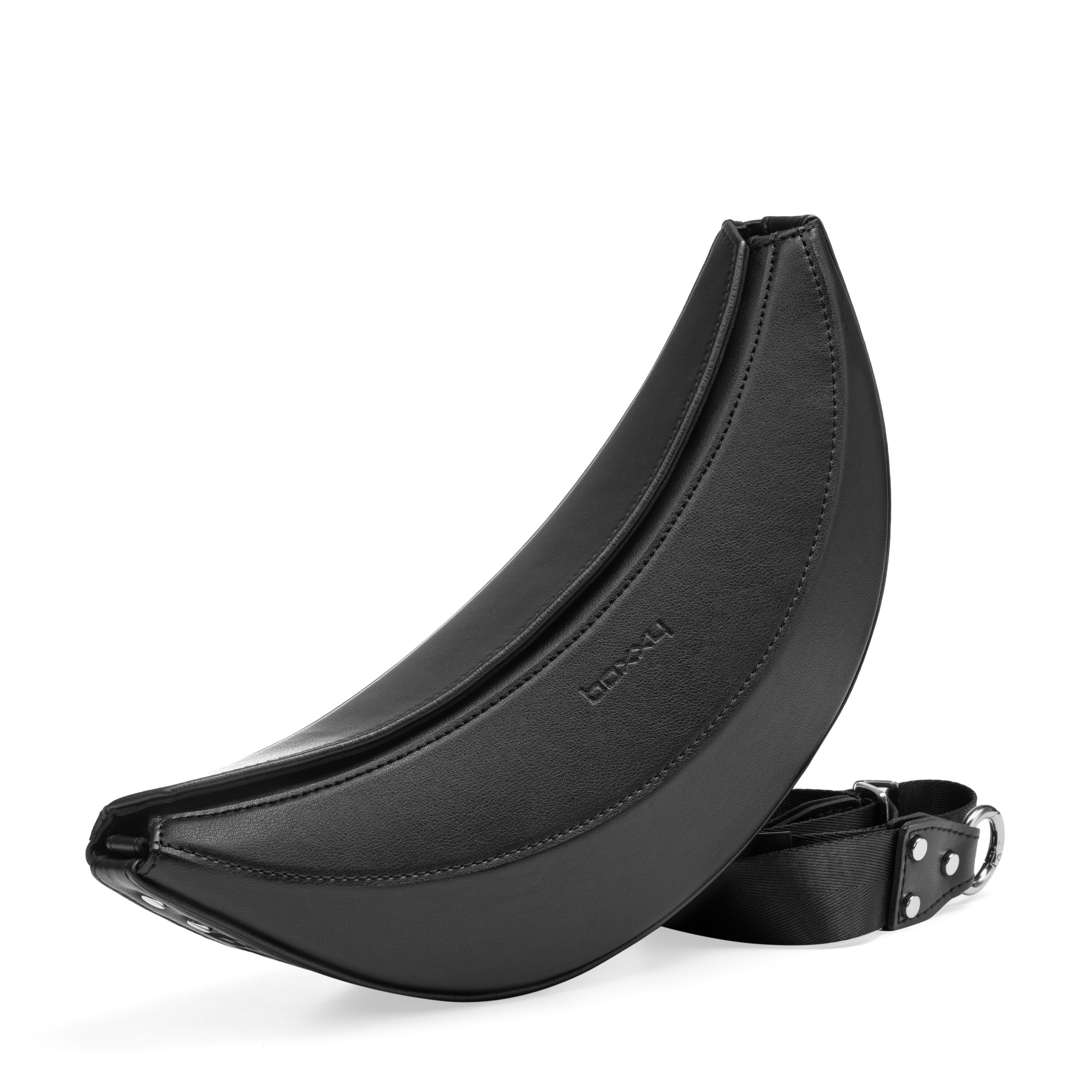 Сумка BANANA BAG 3030 имеет форму банана и выполнена из гладкой черной кожи. Это стильный аксессуар среднего размера, который станет отличным дополнением для создания комфортных и современных образов. Закрывается с помощью потайных магнитов, внутри сумки находится одно отделение. На нижней части корпуса выполнена декоративная надпись.