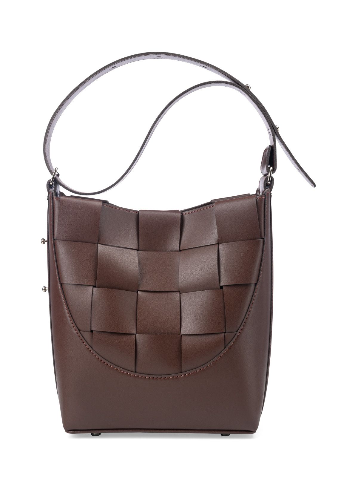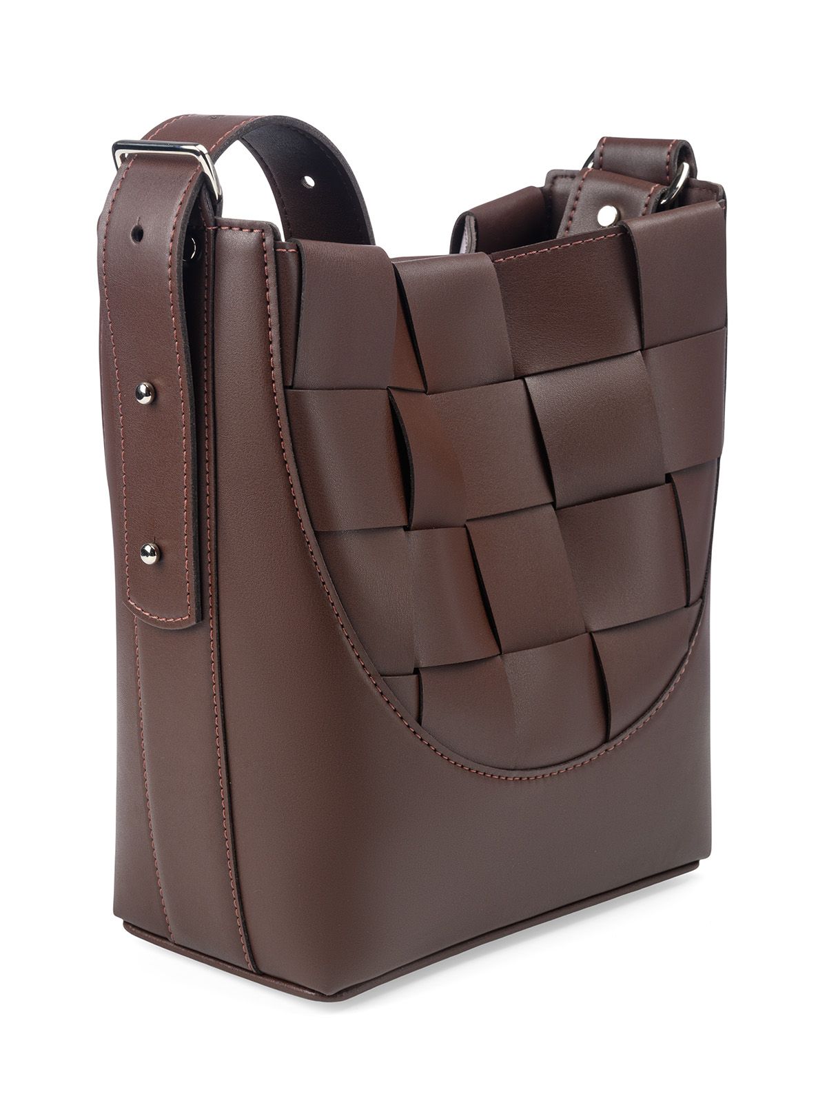 Сумка среднего размера, мягкой формы BASKETTY 3042 в форме корзинки. Закрывается на потайные магиты. Передняя и задняя стенки выполнены в виде плетения. На дне установлены металлические ножки (пукли). Внутри одно отделение. Внутри сумки два накладных кармана с резинкой. Вмещает формат А5. В комплект входит косметичка, которая зафиксирована внутри сумки на кожаный ремешок. К сумке прикреплён плечевой ремень шириной 3,5 см.