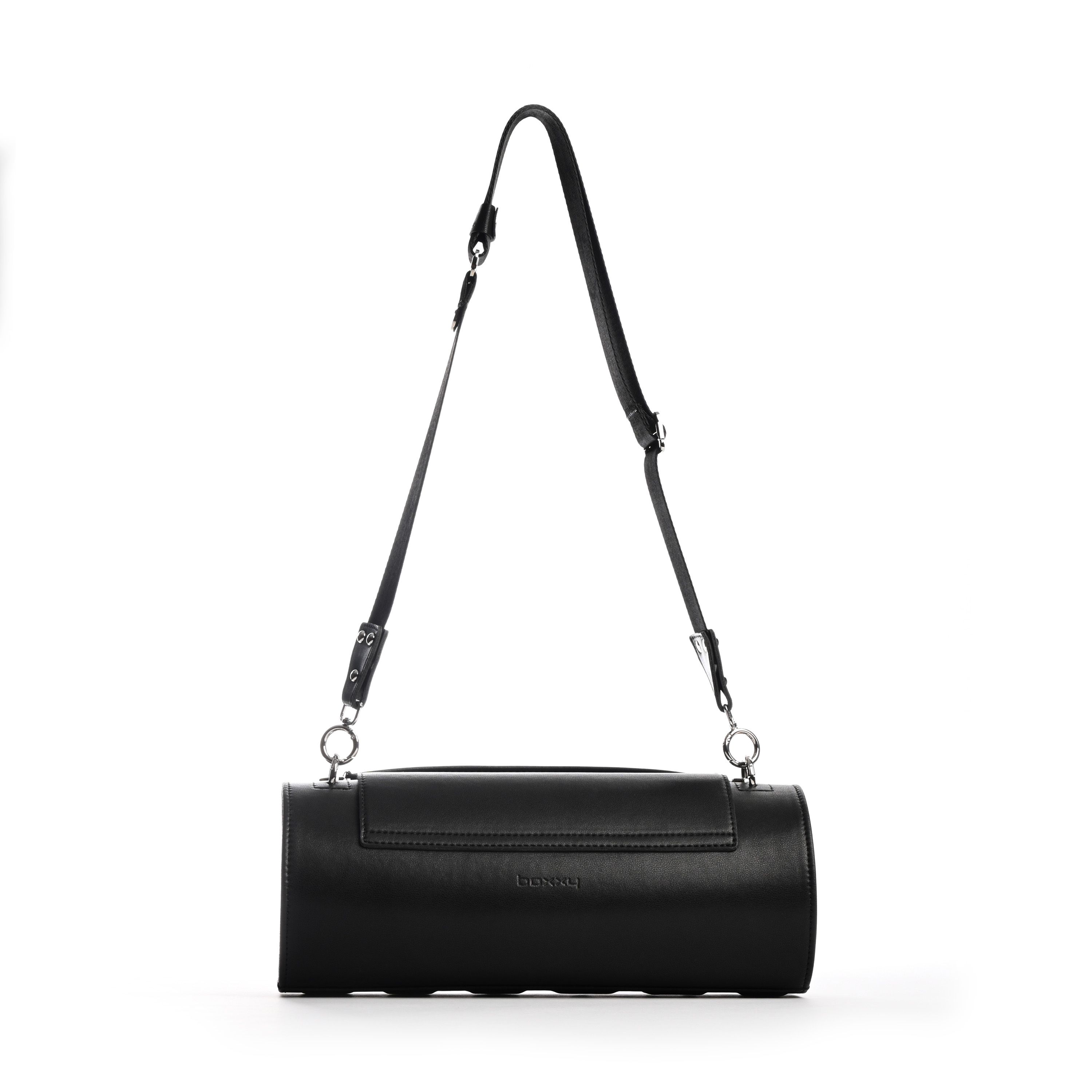Цилиндрический силуэт и математически выверенные линии – пожалуй, одна из самых акцентных моделей бренда – это сумка BAZOOKA. Аксессуар выполнен в черной гладкой коже расцветки "ультра черный" - это значит, что сумка изнутри и снаружи полностью черная.