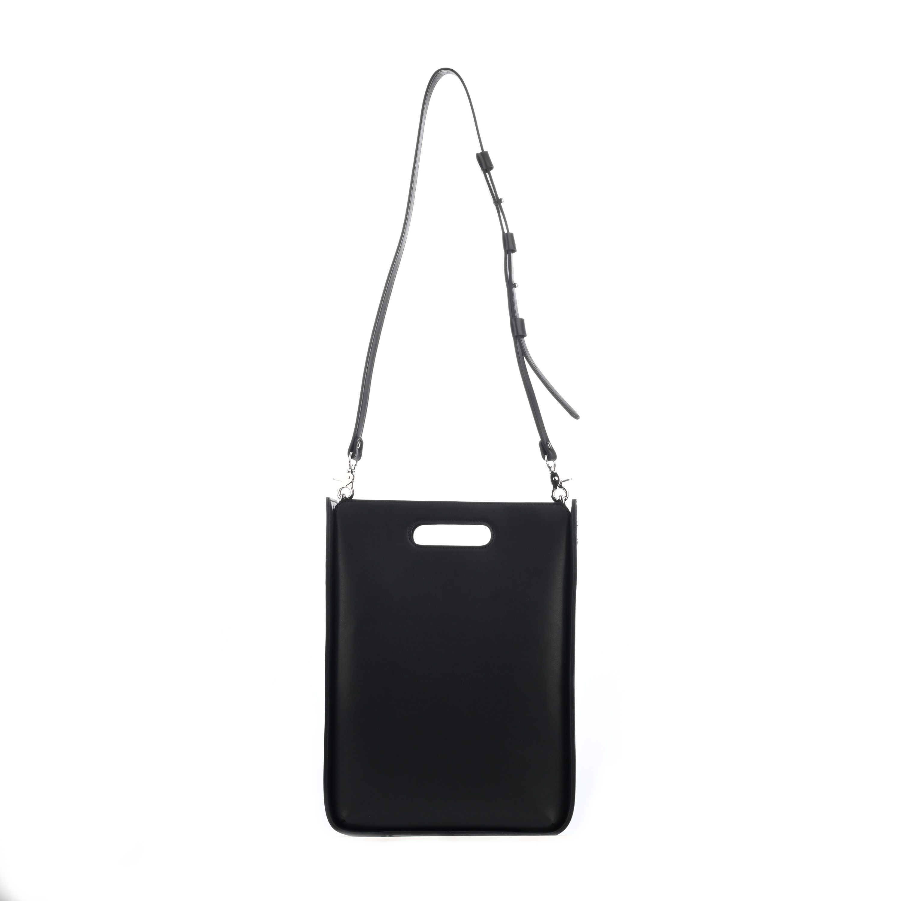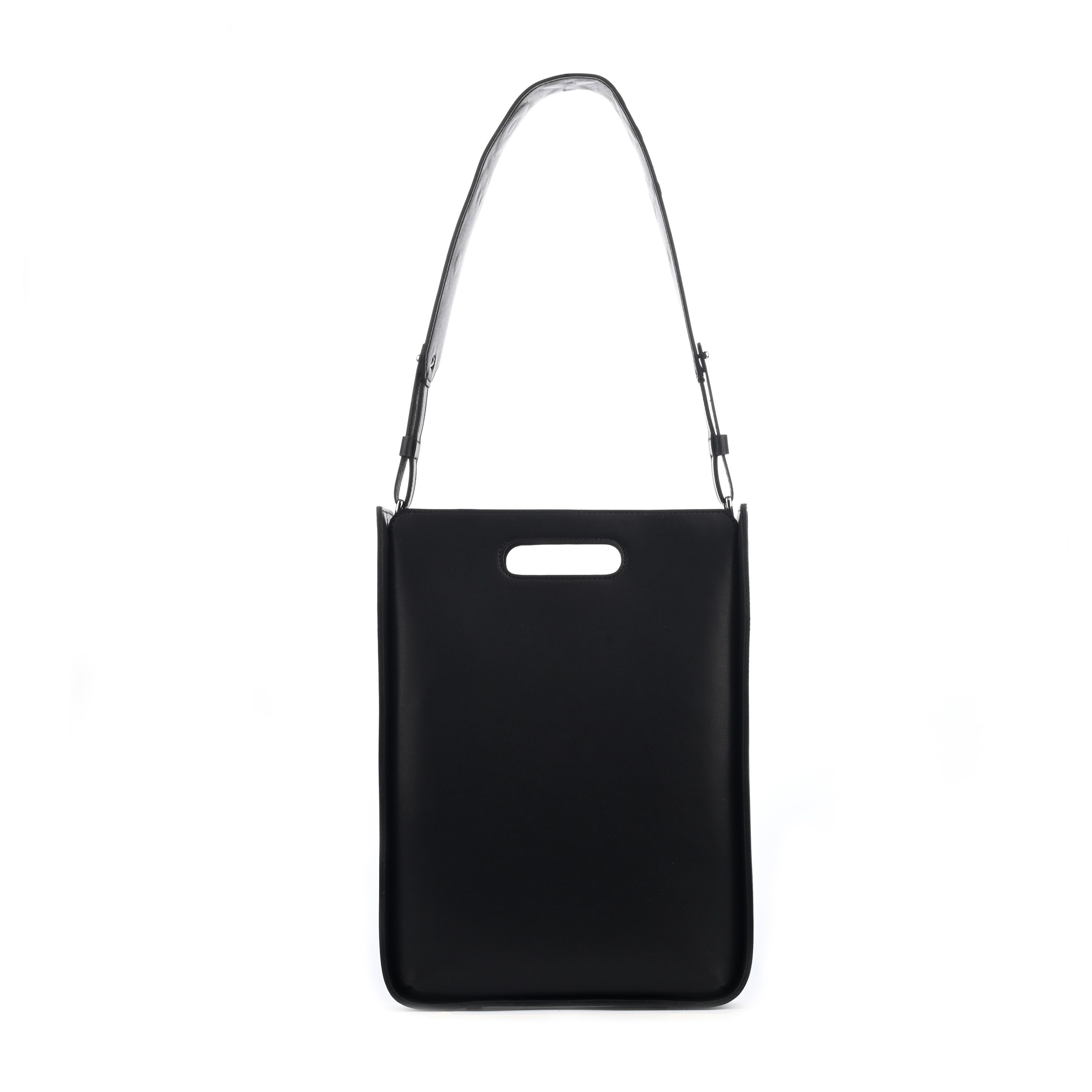 Сумка CHESTER 3201 среднего размера, в форме пакета, изготовлена из гладкой черной кожи. Закрывается на магнитные кнопки, внутри - одно отделение. Внутри сумки карманы - накладной с молнией и накладной с визитницей для карточек. Подходит для формата А4.