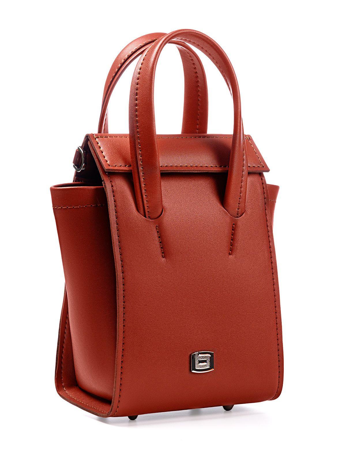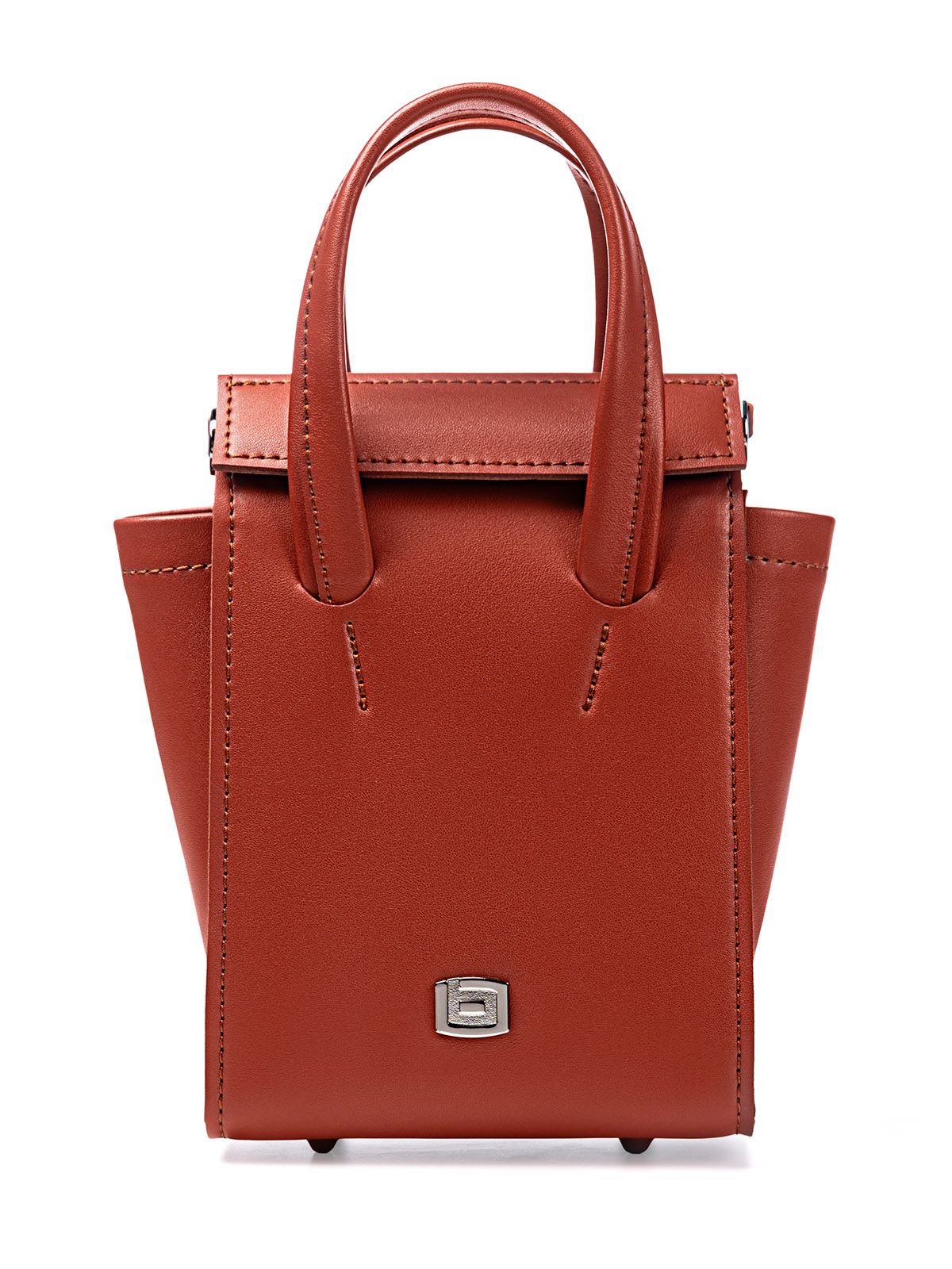 Стильная сумка маленького размера с потайными магнитами в виде застёжки украшена металлическим элементом на лицевой стороне и устойчивыми ножками на дне для дополнительной поддержки. Внутреннее отделение оснащено накладным карманом и карманом-визитницей для хранения пластиковых карт. Сумка легко вмещает документ формата A5, что делает её идеальным выбором для активных людей.