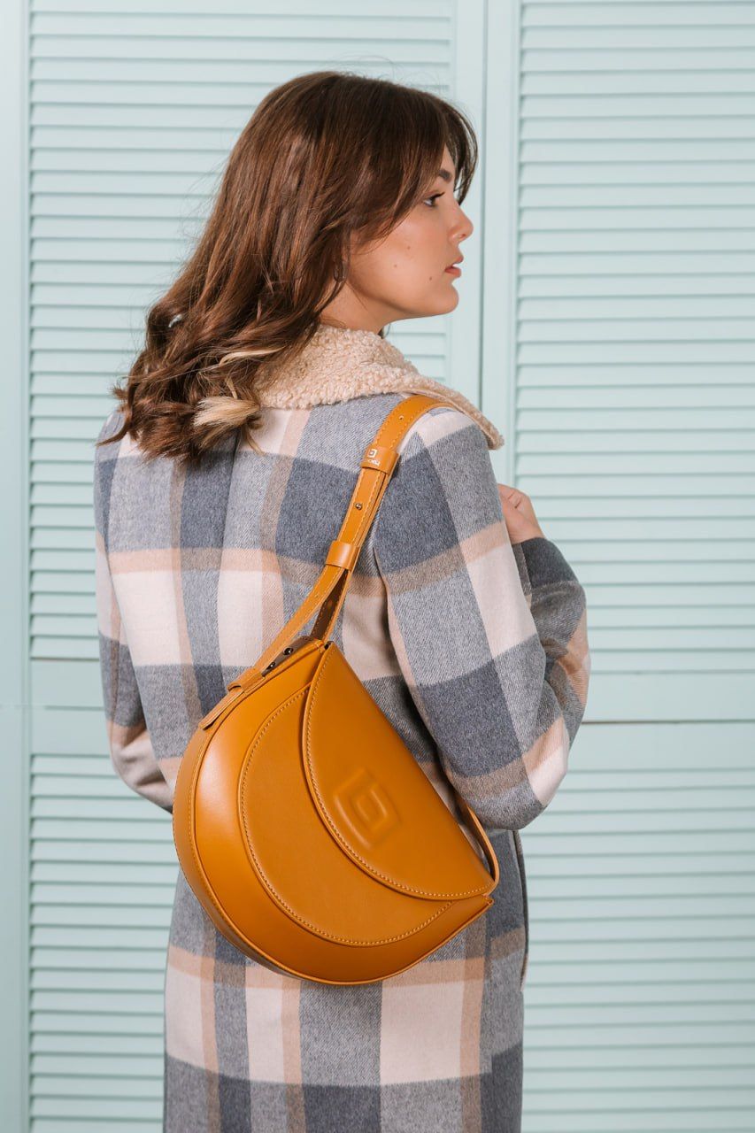 Сумка среднего размера CLEO 2206 в полукруглой формы. Закрывается на клапан с потайными магнитами. На задней стенке карман. На клапане выполнен объёмный декоративный элемент. Внутри одно отделение. На стенках подклада: карман накладной, карман на молнии. Вмещает формат А5. В комплекте плечевой ремень, регулируемый до 120 см.