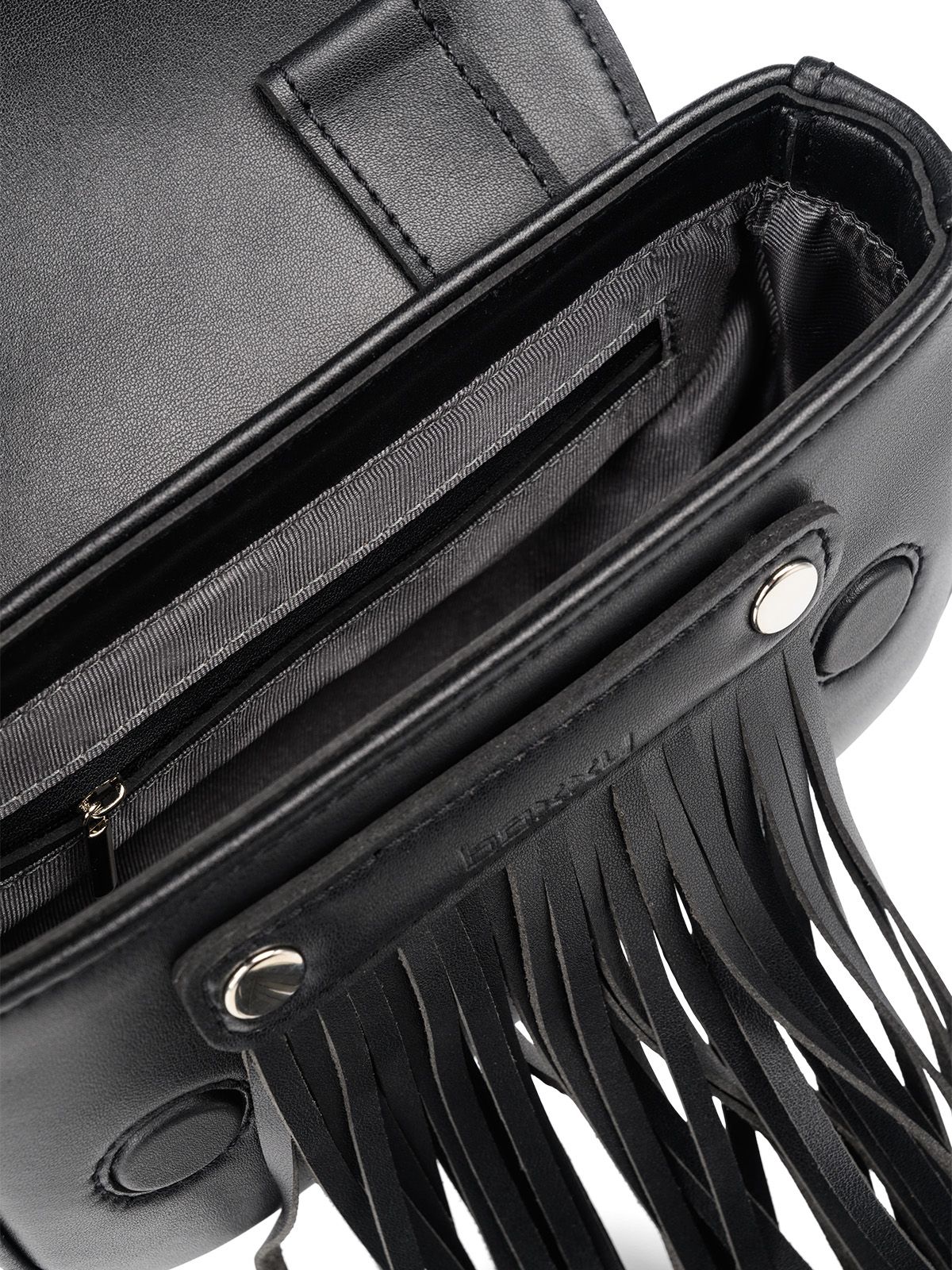 Сумка среднего размера DIONA mini 3008 с бахромой. Закрывается клапаном на магнитах. На передней стенке крепится съёмная бахрома (крепление кнопки). Бахрому можно пристегнуть к плечевому ремню в качестве эполета. Внутри одно отделение. На стенках подклада: карман на молнии, карман-визитница (под карточки). В комплекте съёмный плечевой ремень, регулируемый до 210 см.