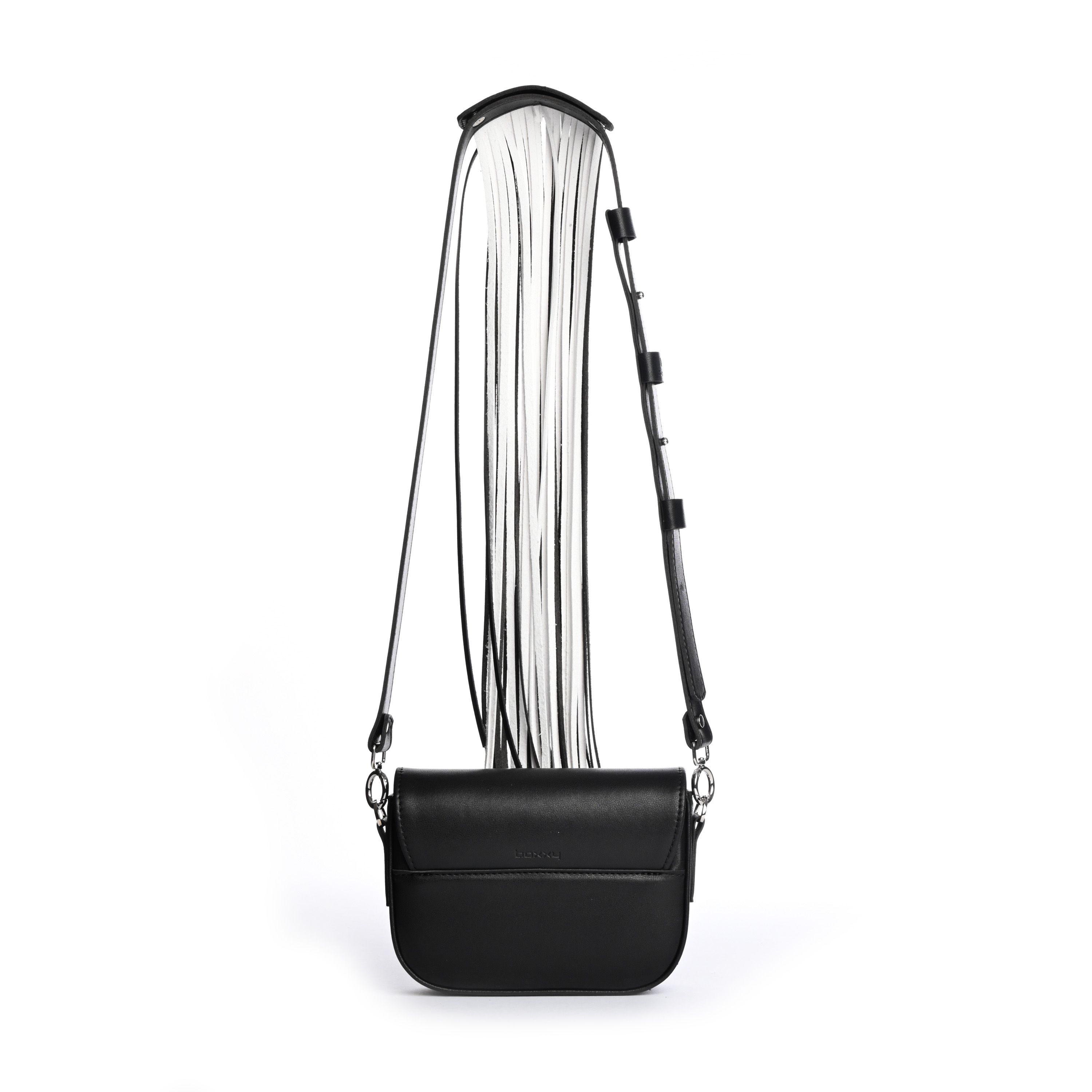 Сумка среднего размера DIONA mini 3008 с бахромой. Закрывается клапаном на магнитах. На передней стенке крепится съёмная бахрома (крепление кнопки). Бахрому можно пристегнуть к плечевому ремню в качестве эполета. Внутри одно отделение. На стенках подклада: карман на молнии, карман-визитница (под карточки). В комплекте съёмный плечевой ремень, регулируемый до 210 см.