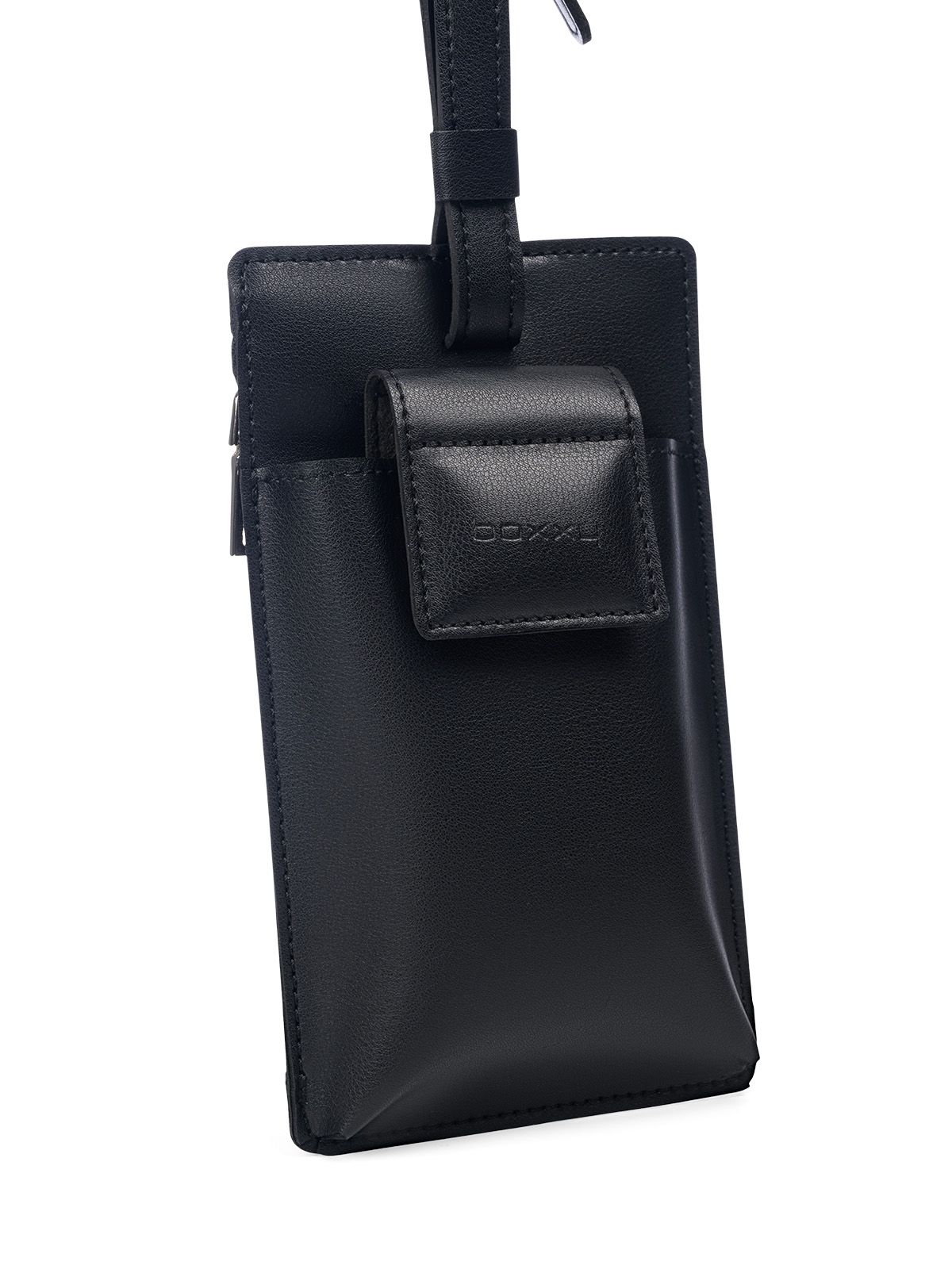 Чехол для хранения телефона. Внутри одно отделение. Закрывается на клапан с магнитами. На задней стенке карман на молнии, для хранения паспорта и карман-визитница. В комплекте идёт ремень, регулируемый до 110 см.