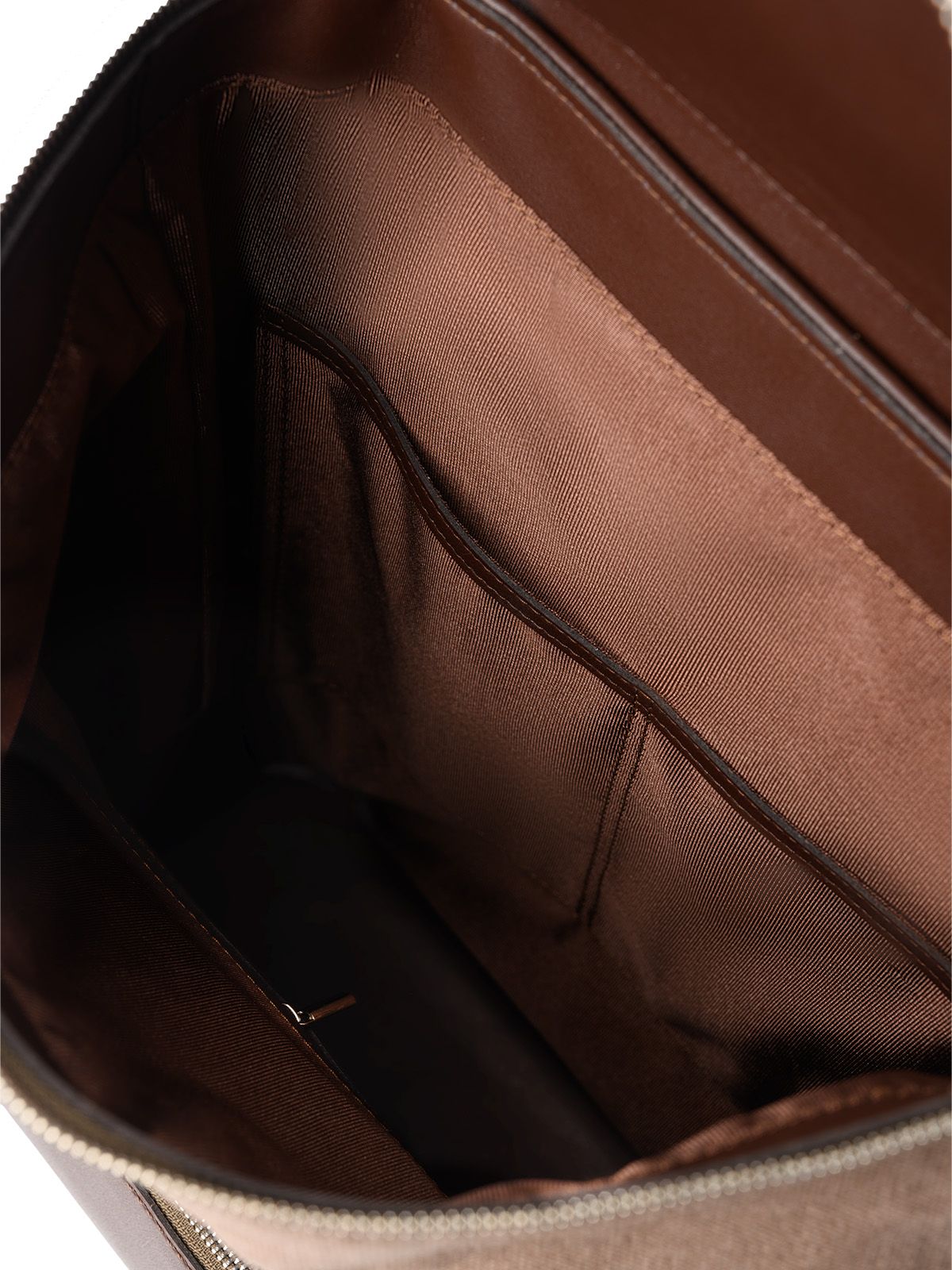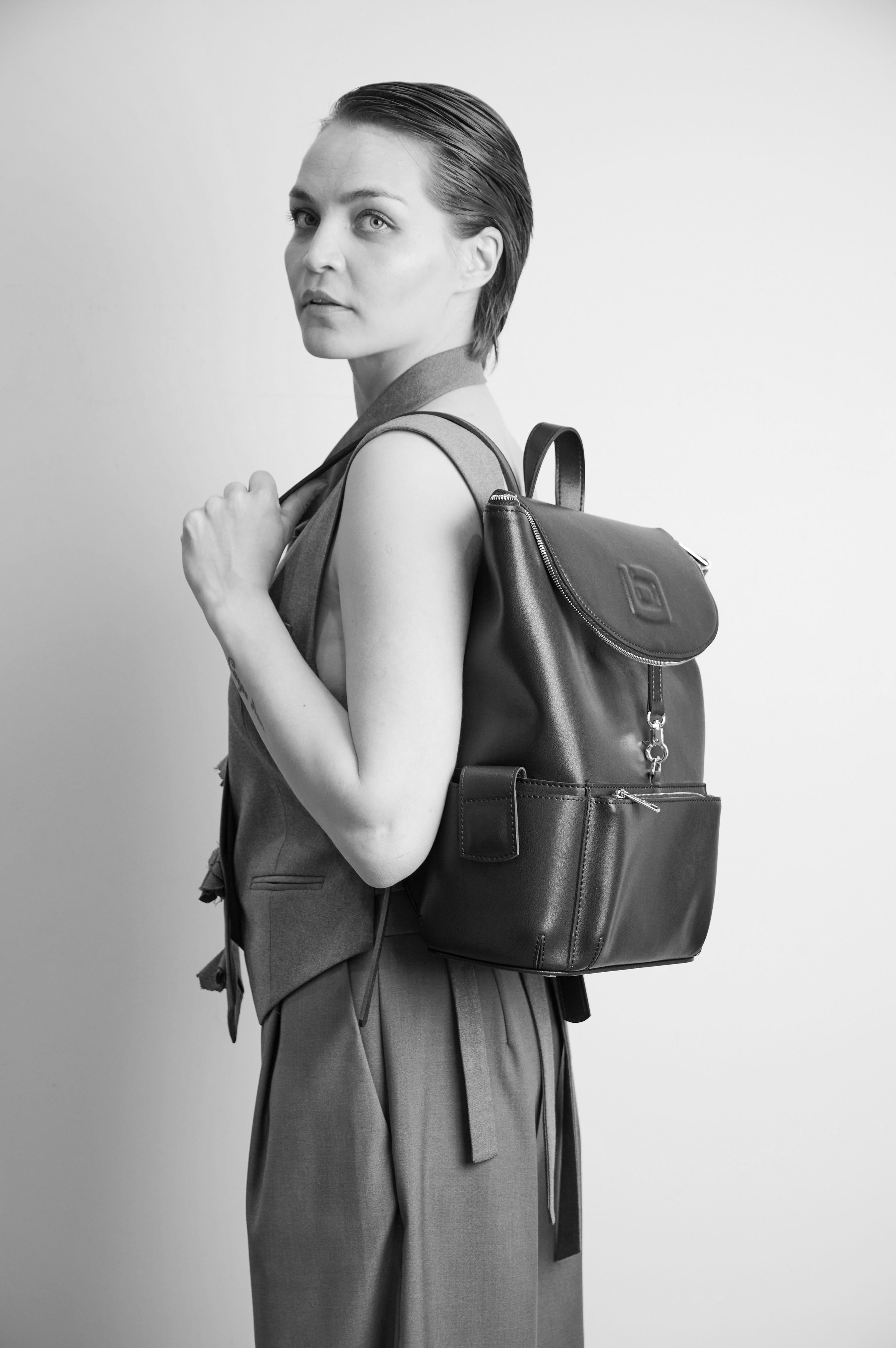 Рюкзак большого размера (L) Закрывается на замок молнию. На передней стенке имеется объёмный накладной карман закрывающийся на молнию. По бокам накладные карманы с хлястиками на магнитах. На задней стенке карман на молнии. На дне установлены ножки (пукли). Внутри одно отделение. На стенках подклада: два накладных кармана, карман на молнии. Вмещает формат А4. На задней стенке закреплены регулируемый до 75 см лямки-ремни и короткая ручка.