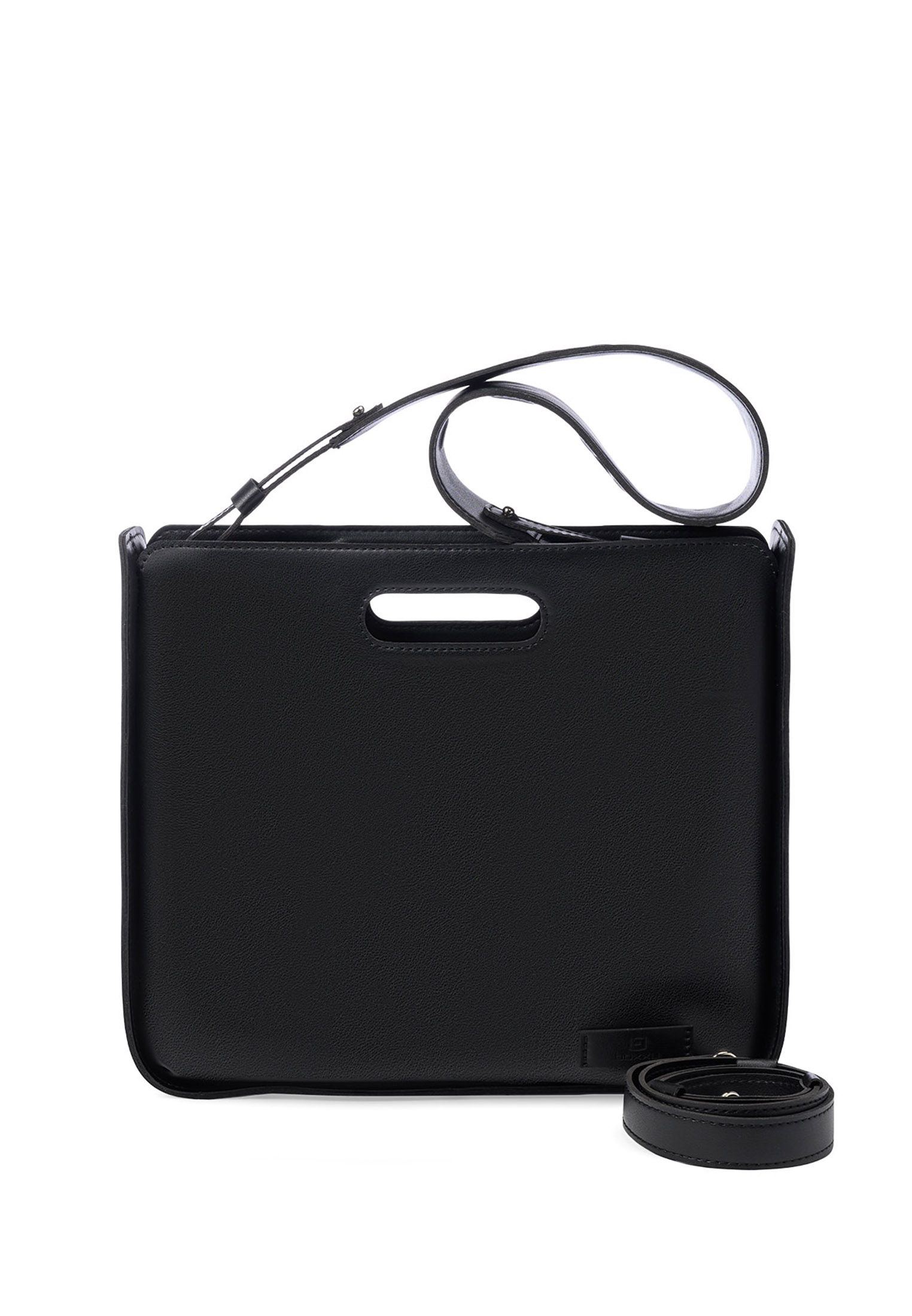 1. Bluffer формата А4 (размер L) с тремя сменными ремнями: один тонкий кожаный с регулировкой и два широких ремня с объемными буквами - черный и розовый.