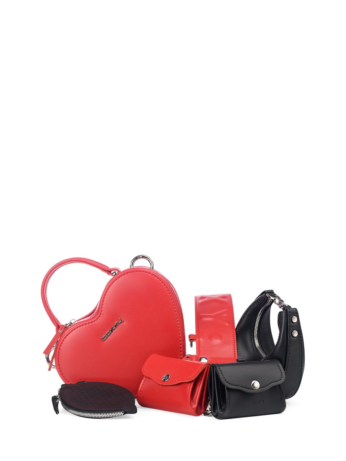 1. Bluffer формата А4 (размер L) с тремя сменными ремнями: один тонкий кожаный с регулировкой и два широких ремня с объемными буквами - черный и розовый.
