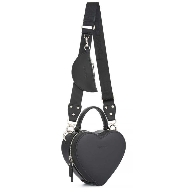 1.Миниатюрная сумка в форме сердца berry (s) на тканевом ремне-стропе с дополнительным тонким кожаным ремнём.