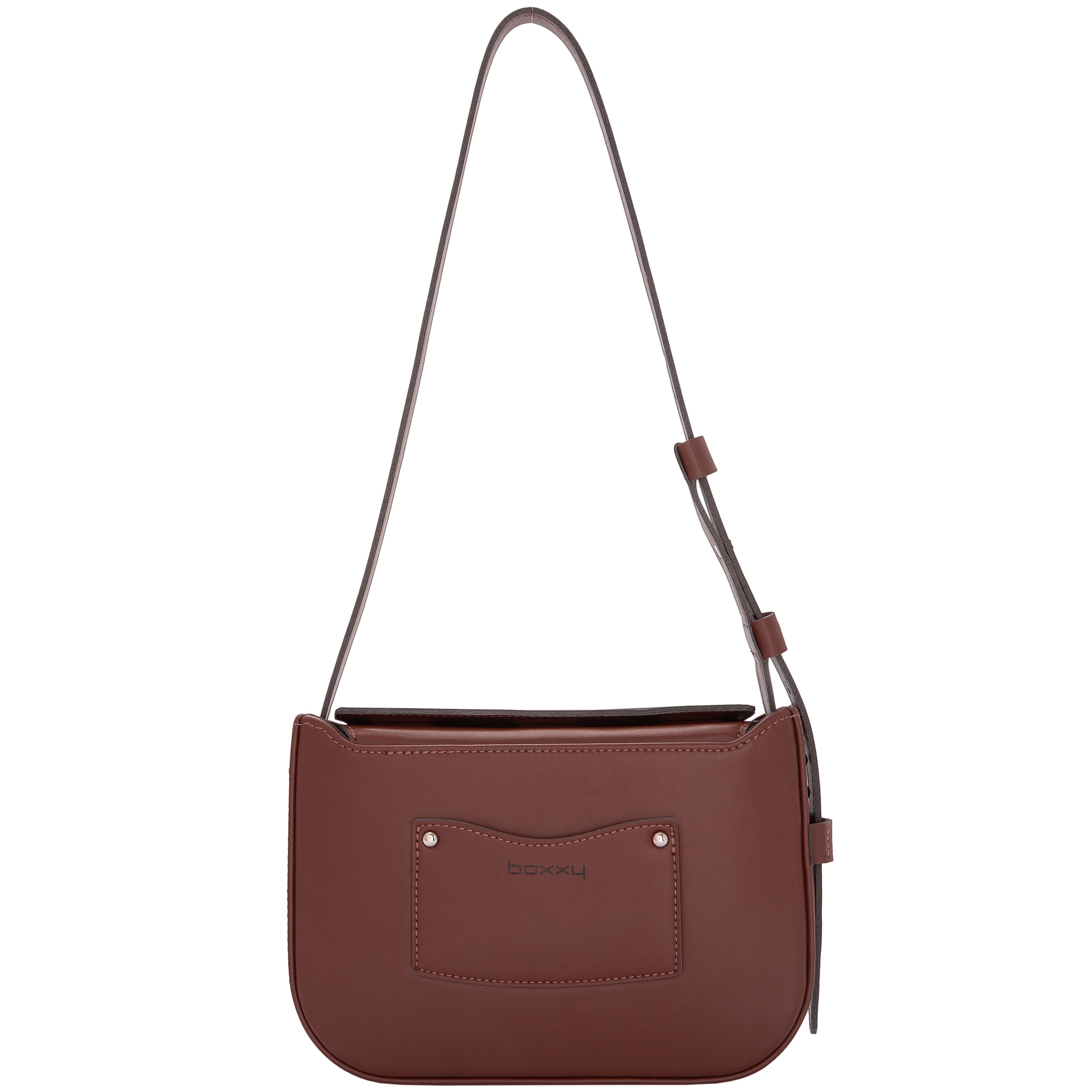 Закрывается на потайные магниты. На передней стенке объёмный декоративный логотип. На задней стенке накладной карман. Внутри одно отделение. На стенках подклада: кожанный накладной карман, карман на молнии.