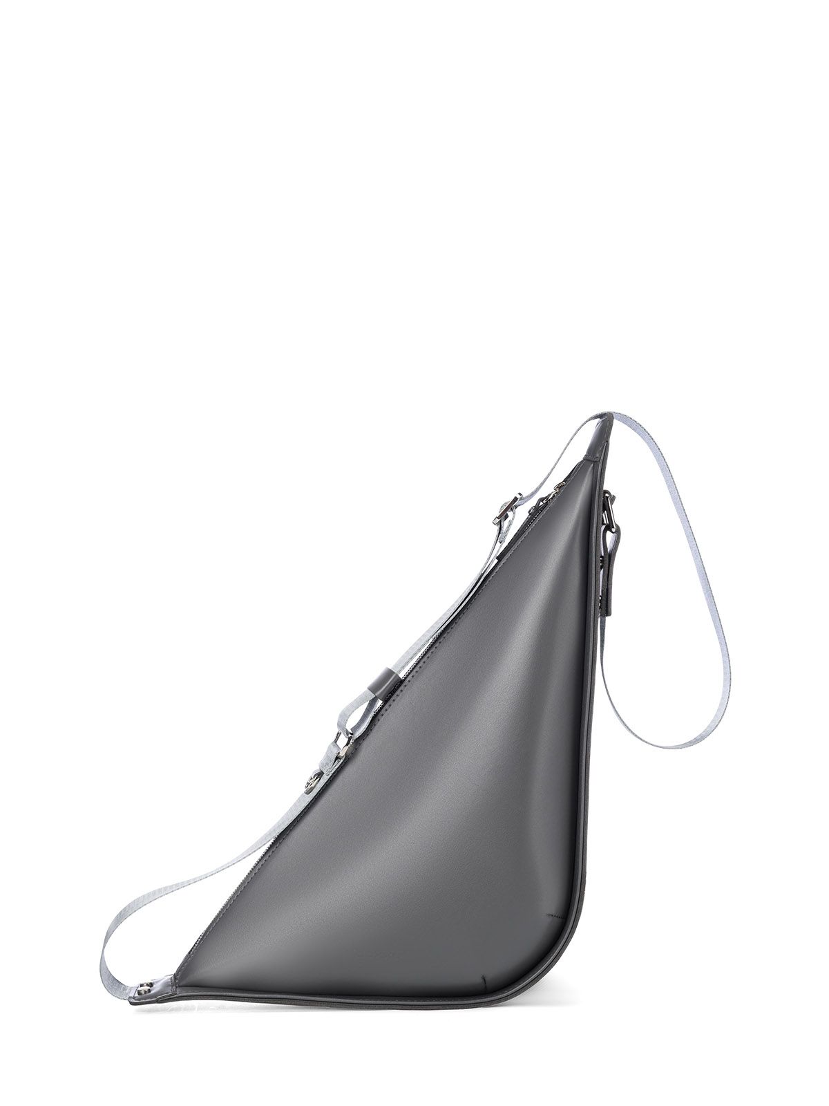 Сумка треуголной формы 3035 — стильный аксессуар из гладкой кожи. Закрывается на молнию. Внутри одно отделение. На передней и задней стенках подклада карманы закрывающиеся на молнию. В комплекте плечевой ремень, регулируемый до 120 см.