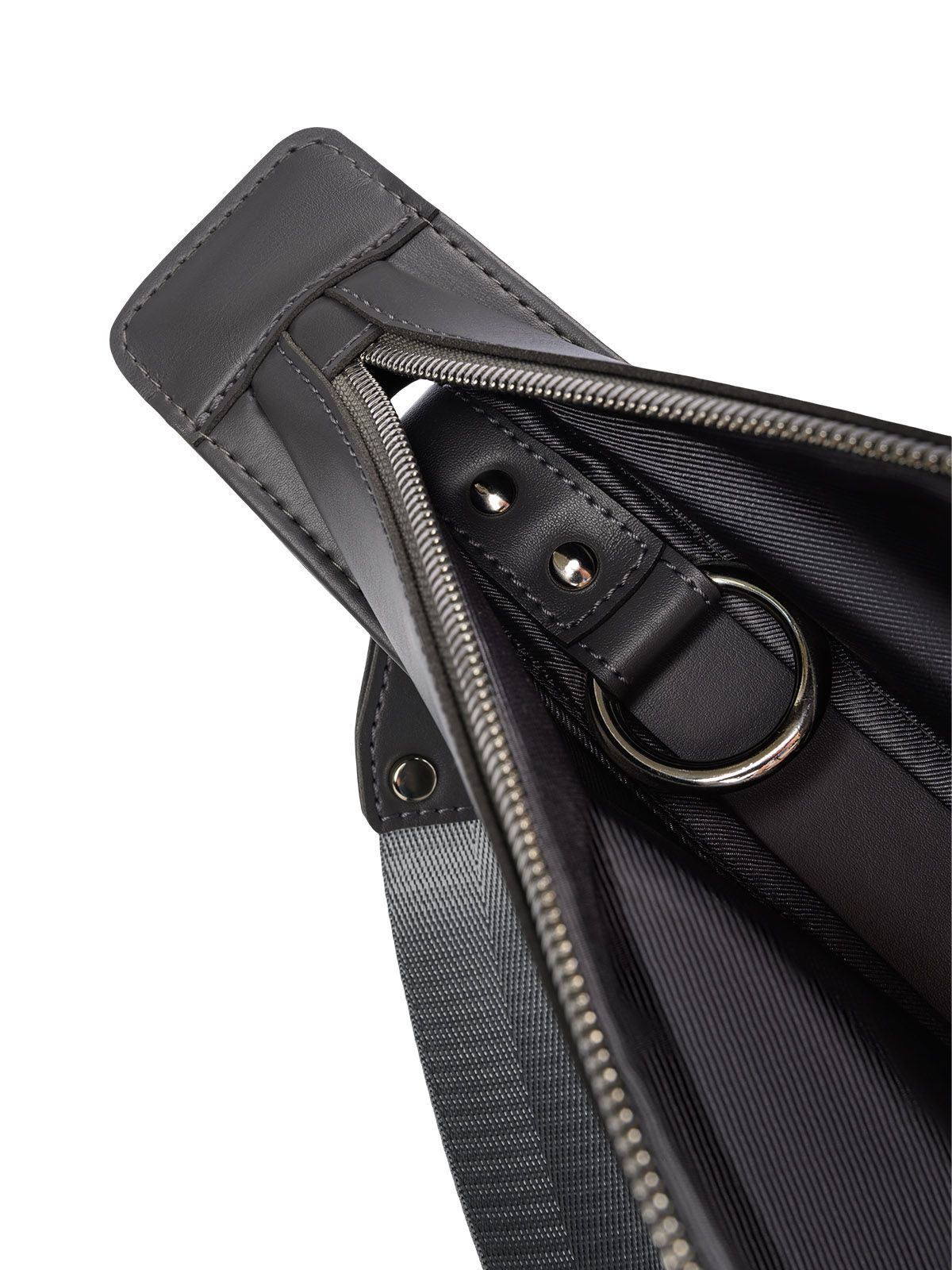В комплекте с основным изделием скользящий ремень-стропа, поэтому ее одинаково удобно носить на плече или через плечо.