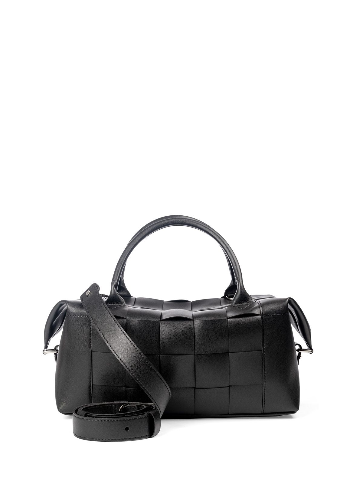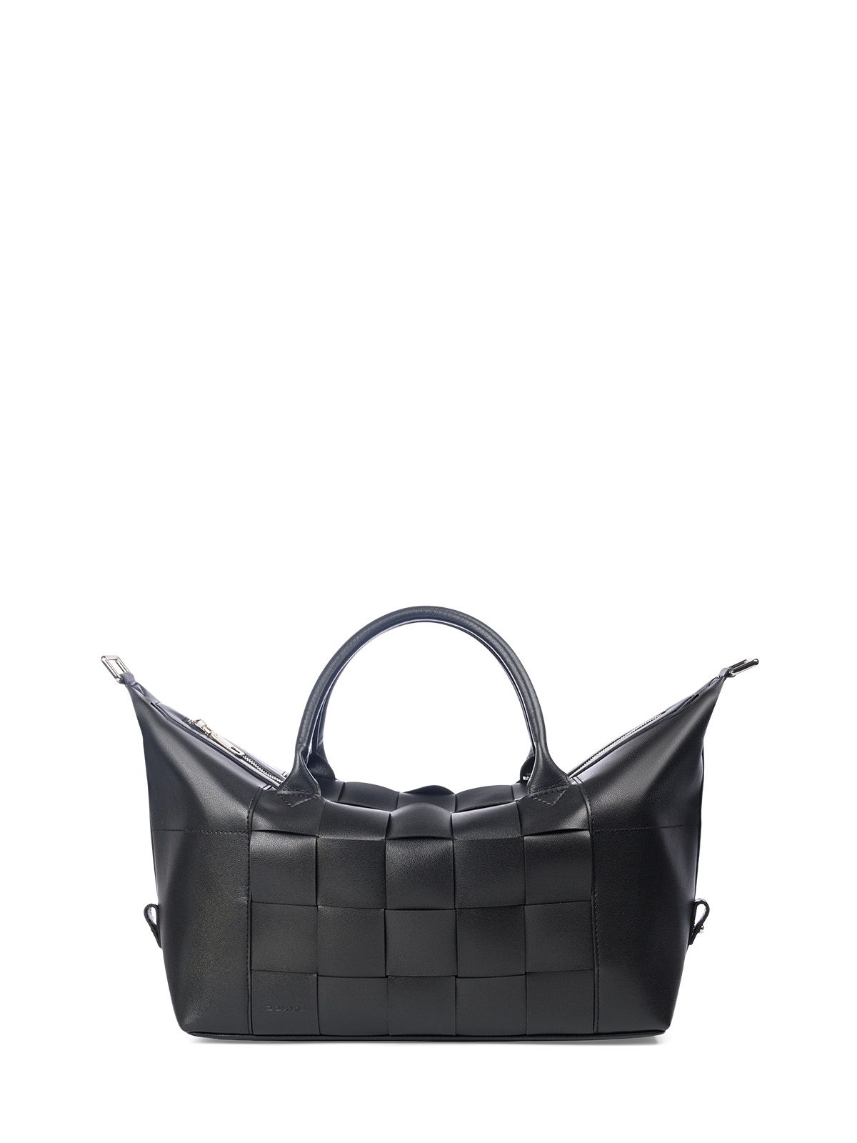 Закрывается на молнию.Стенки сумки собраны путём переплетения полос из кожи. По боковым швам настрочены хлястики для фиксации верхних углов сумок в загнутом положении, что придаёт красивую, прямоугольную форму изделмю.