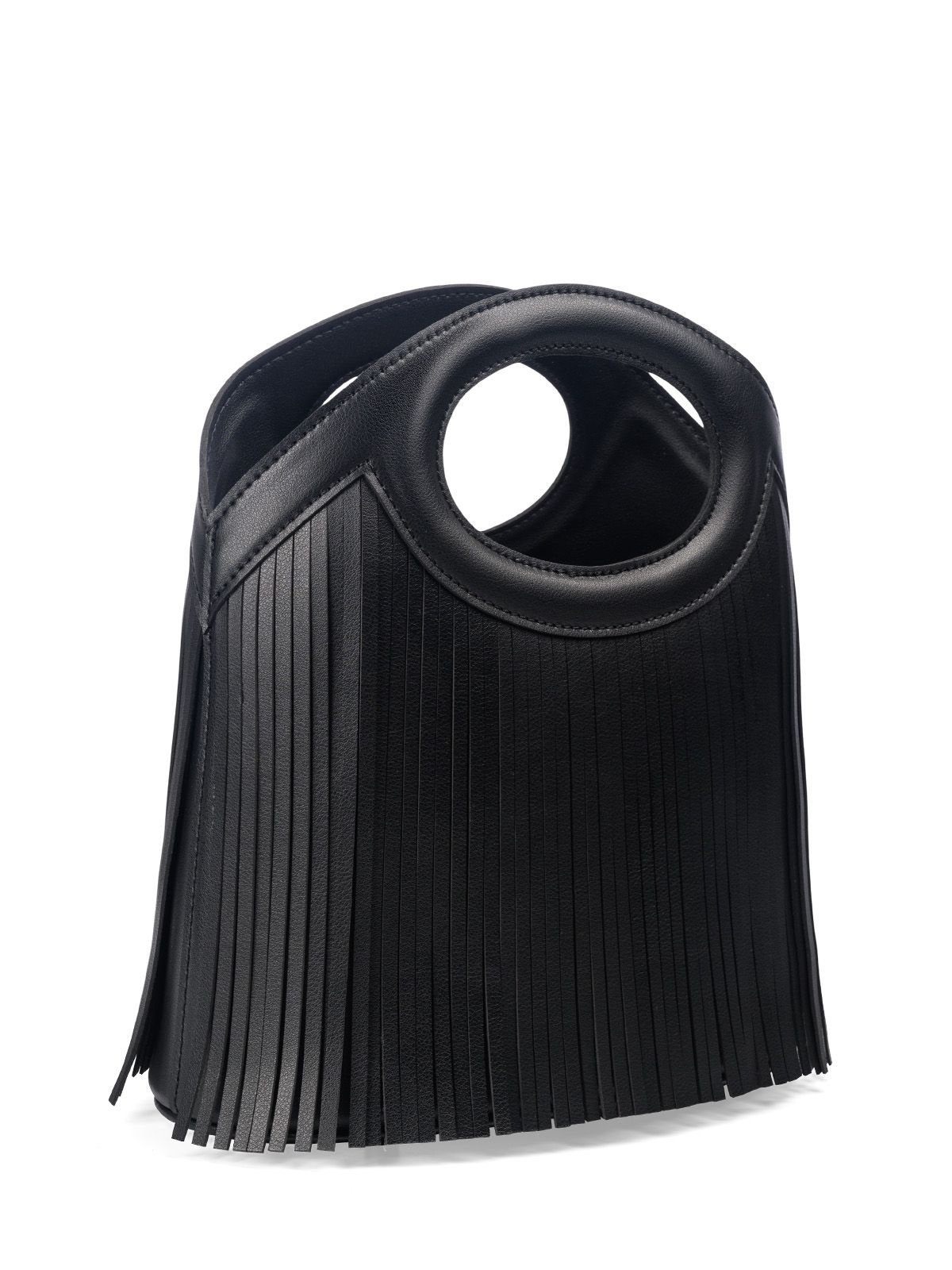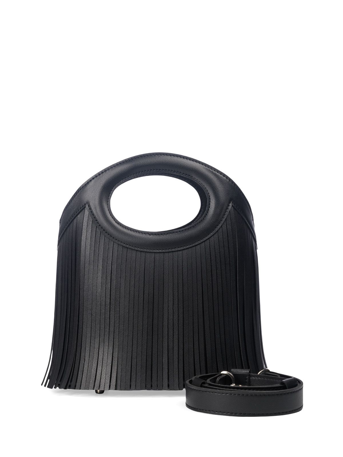 Сумка с бахромой маленького размера SHEBBY 3043. В верхней части прорубные отверстия-ручки овальной формы. Открытый верх без застёжки обеспечивает лёгкий доступ к содержимому. Внутри 2 кармана: накладной на резинке и карман на молнии. На передней и задней стенках декоративная кожаная бахрома. На дне сумки металлические ножки (пукли). В комплект входит съемный, регулируемый до 120 см, плечевой ремень.