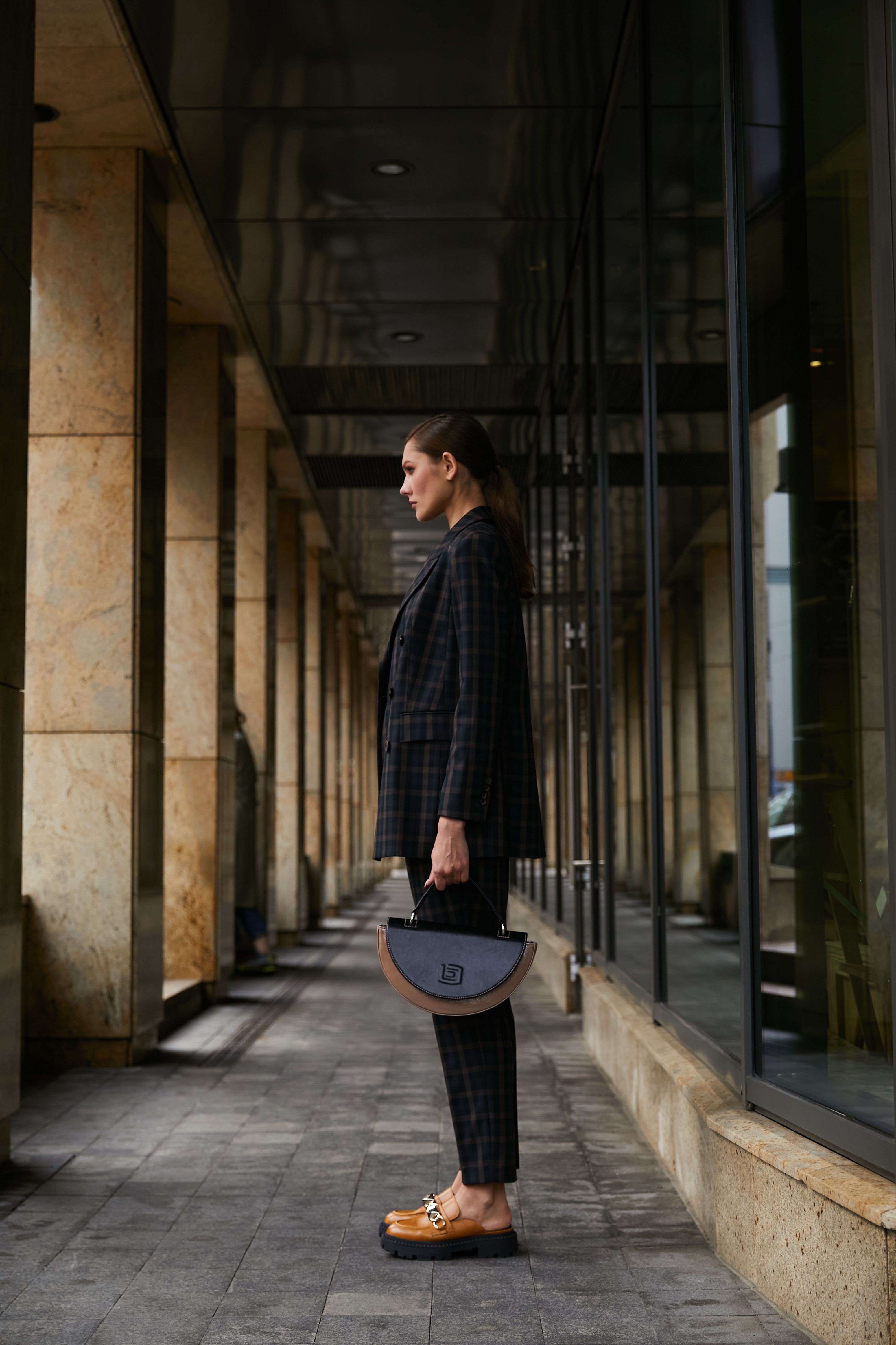 Внутрь поместятся портмоне, смартфон и очки в футляре.