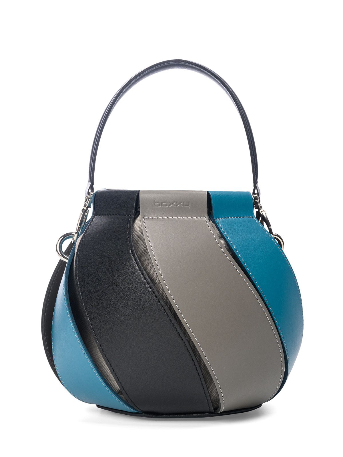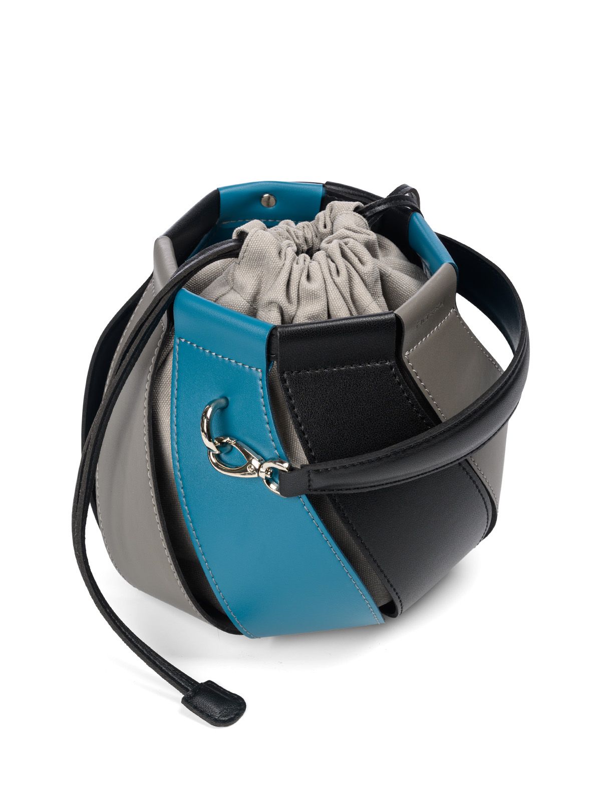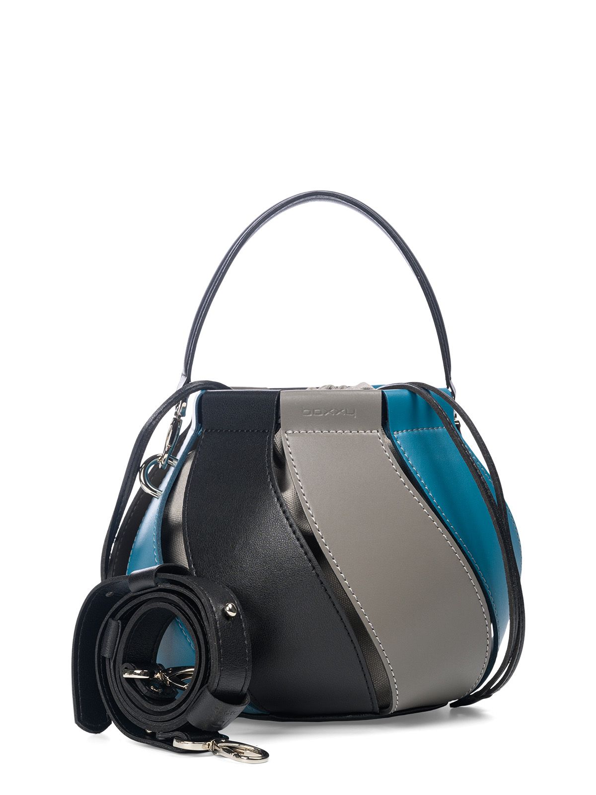 Сумка TWISTY 3037 в форме купола с кожаными клиньями, закрученными по спирали. Внутри мягкий мешок из велюровой ткани, который затягивается на кожаные шнурки. В комплекте маленькая косметичка из велюровой ткани, на молнии для хранения мелочей. В комплекте съемная ручка и тонкий плечевой ремень.